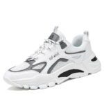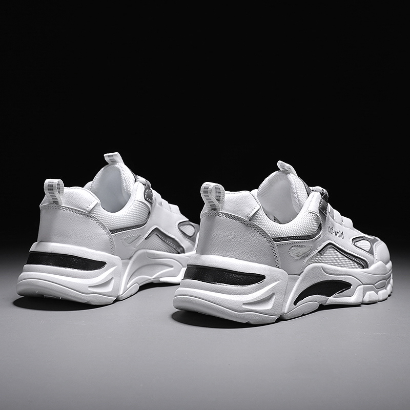 These trendy chunky sneakers feature a clean white base accented with subtle gray details, creating a sleek and modern urban look. The upper is crafted from premium breathable mesh and synthetic leather, ensuring durability and ventilation for long-lasting comfort. The thick rubber outsole offers excellent anti-slip and cushioning performance, providing stability and ease of movement in any situation. Perfect for daily commutes, casual wear, or street-style looks, these sneakers effortlessly complement any outfit, showcasing your fashion sense.