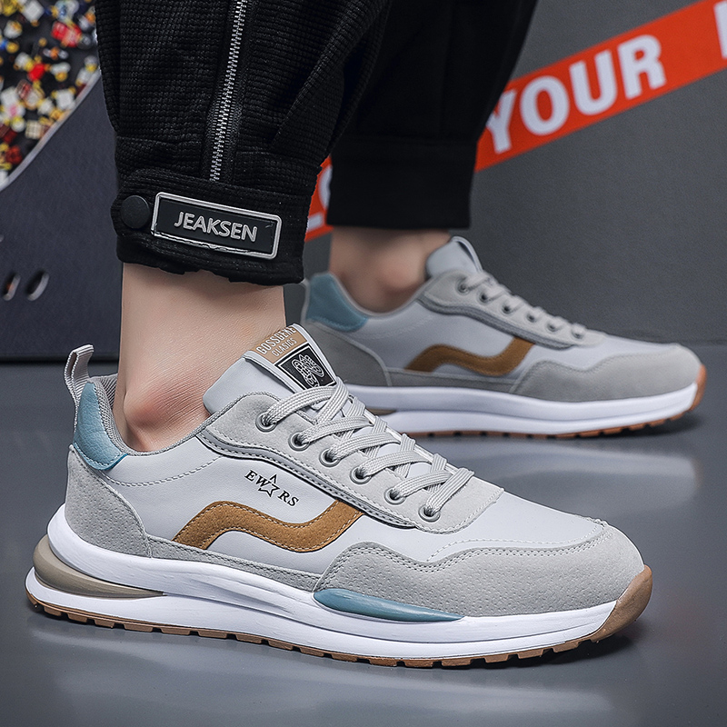 These stylish gray casual sneakers combine modern design with functional comfort, perfect for everyday wear and light activities. The upper is crafted from premium suede and synthetic materials, offering a soft, breathable, and textured feel. Complemented by brown accent details and fine stitching, they add a touch of sophistication to your style. The thick cushioned sole provides excellent support and anti-slip performance, ensuring comfort and stability in any setting.