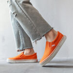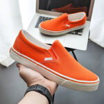 These vibrant orange slip-on canvas shoes combine standout style, comfort, and ease of wear. Add a pop of energy to your wardrobe and make every step bold and fashionable!