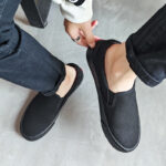 These slip-on black canvas shoes combine simplicity, comfort, and versatility. With their timeless design and easy-wear functionality, they are the perfect addition to your everyday essentials.