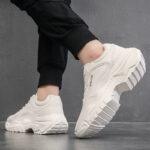 These off-white sneakers feature a simple yet elegant design, combining a chunky sole with a soft neutral tone for the perfect mix of style and comfort. The upper is crafted from high-quality synthetic leather, offering a soft touch, durability, and easy maintenance. The sole is made from high-elastic materials, providing excellent cushioning and support, making it ideal for daily wear, commuting, or casual activities.