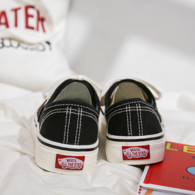 Fashion black and white color scheme walking style vulcanized shoes low top canvas trend shoes-vt59