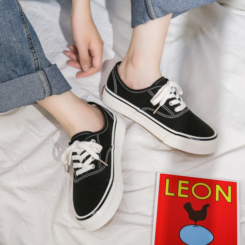 Top Canvas Sneakers Casual Lace Up Flat Slip On Shoes-x188
