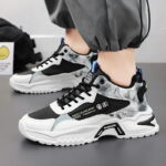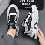 trendy sports sneaker blends street style with modern design, featuring high-quality leather and breathable mesh panels for durability and comfort. The unique black, white, and gray color-block design, complemented by bold trend-inspired logos and detailed accents, makes it stand out from the crowd. The thick, non-slip outsole provides excellent support and stability, perfect for both everyday wear and athletic activities. Whether you’re a fashion enthusiast or someone who prioritizes comfort, this sneaker is a must-have to help you effortlessly embrace urban style. Get yours now and step into a new chapter of fashion!