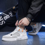 - Unique Color Combination: The white and grey base with bright orange details adds a fresh and stylish touch, perfect for streetwear fashion.