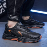 These black and orange sneakers are designed with dynamic style and functionality in mind, offering a perfect blend of fashion and comfort for everyday wear. The upper combines high-quality breathable mesh with durable synthetic leather, ensuring excellent ventilation and long-lasting use. The lightweight sole provides superior cushioning, while the orange accents add a vibrant touch to the overall design, making them ideal for streetwear or athletic activities.