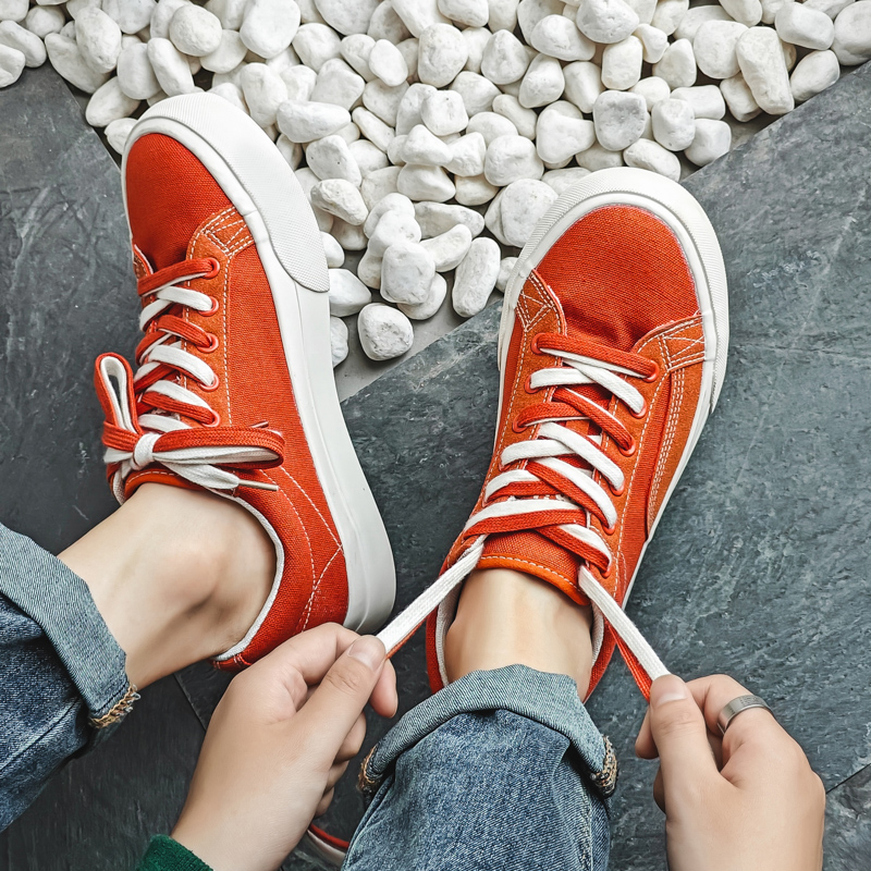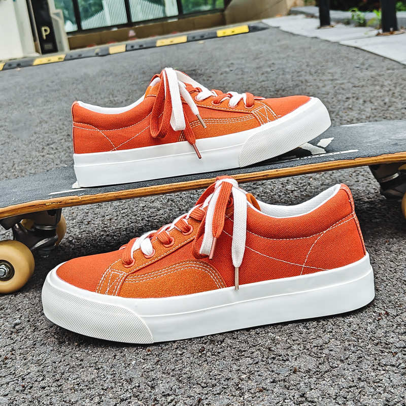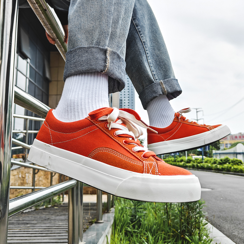 Low-top Canvas Sneakers Men Fashion Orange Skateboard Shoes Breathable Casual Flat Vulcanized Sneakers Men Canvas Shoes-dck818