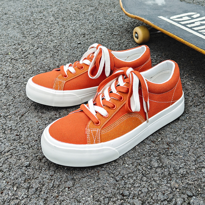 These low-top canvas shoes feature a bright orange hue that exudes energy and youthful vibes, effortlessly creating a casual and stylish look. Crafted with high-quality canvas material, they are breathable and lightweight, paired with a sturdy, wear-resistant rubber sole to provide reliable support and all-day comfort for your daily outings.