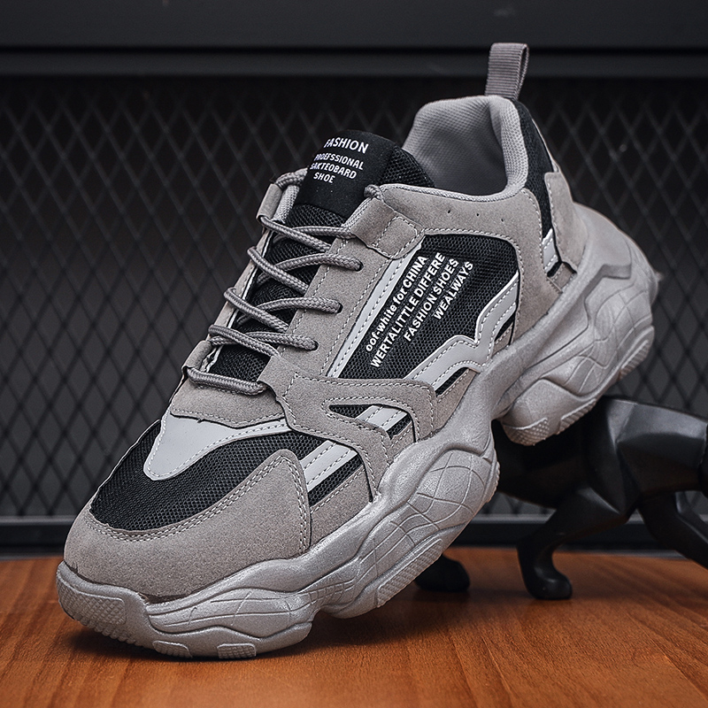 These sneakers perfectly combine style and functionality, featuring a chunky sole design paired with a classic gray and black color scheme for a minimalist yet trendy look. Suitable for various occasions, the upper is crafted from high-quality mesh and durable synthetic materials, providing excellent breathability and support. The thick sole structure ensures stable support and enhanced comfort.
