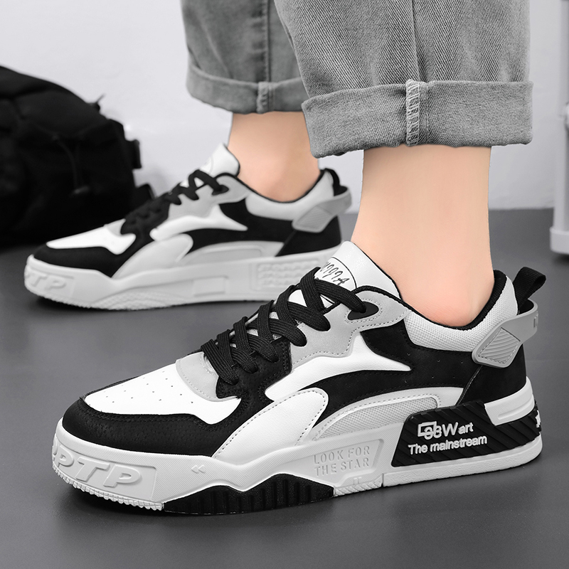 This stylish casual sports shoe features a unique black and white color-block design, combining fashion with functionality. Made from premium materials, the upper is wear-resistant and breathable, while the thickened sole provides stable support for all-day comfort. Modern details, such as the 3D decorations and eye-catching letter patterns, enhance the contemporary street style, ensuring you stand out from the crowd. Whether for daily casual wear or trendy urban outfits, this sneaker is the perfect choice, effortlessly meeting various occasions and showcasing confident, stylish vibes.