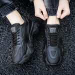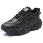 These all-black retro chunky sneakers combine fashion and comfort, designed for consumers who value both style and functionality. The upper is made from high-quality synthetic leather and breathable mesh, offering excellent durability and ventilation. The sleek all-black design exudes understated luxury, while the chunky sole adds height and provides exceptional cushioning, ensuring comfortable wear for daily commutes or athletic activities.