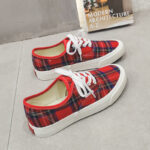 These red plaid canvas shoes perfectly combine classic Scottish tartan elements with modern casual style, showcasing a unique vintage charm. Crafted with high-quality canvas material, the shoes are breathable and durable, featuring a striking red and blue plaid design that ensures you stand out in any crowd. The lightweight and soft inner lining offers a snug and comfortable fit, keeping your feet relaxed even after extended wear. The outsole is made of anti-slip, wear-resistant rubber, providing excellent stability and grip for versatile use. Whether for casual outings, daily commutes, or streetwear styling, these canvas shoes are the perfect choice to express your personality and fashion attitude.