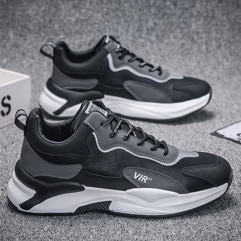 These sneakers feature a classic black and gray color combination, exuding understated luxury with a sleek, modern design. The upper is crafted from high-quality synthetic leather, offering durability, comfort, and easy maintenance, making it ideal for everyday wear. The lightweight sole provides exceptional cushioning and grip, making these shoes a perfect choice for commuting, outings, or casual styling.