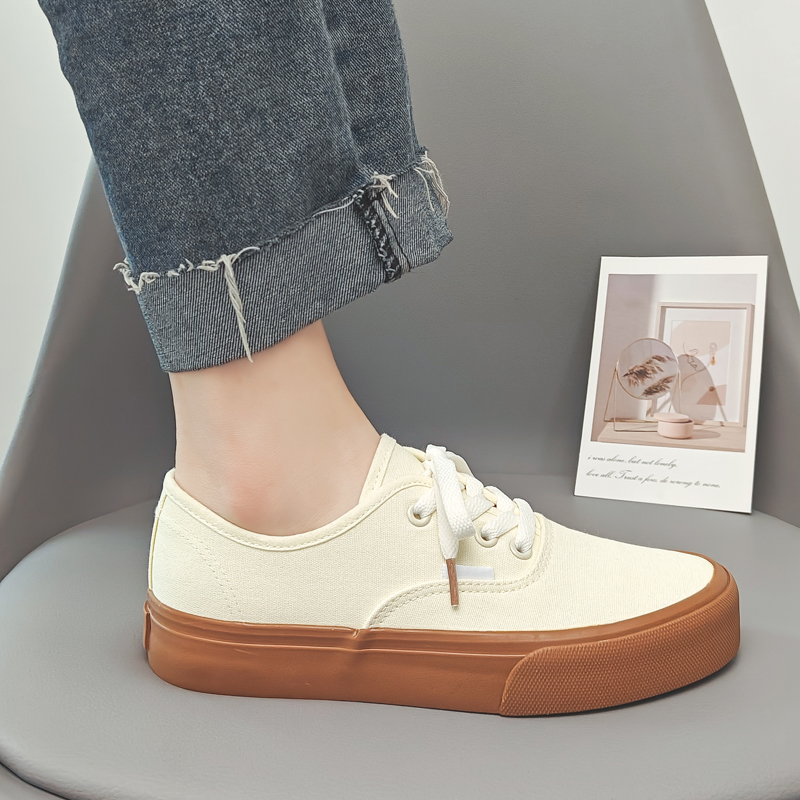 - Retro Design, Stylish and Versatile: The cream canvas upper combined with a vintage brown sole exudes timeless charm, effortlessly matching a variety of outfits.