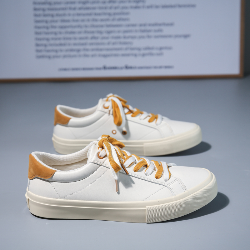 These minimalist and stylish white casual shoes feature thoughtful details with vibrant yellow laces and heel accents, instantly enhancing your overall look with a touch of modern flair. The upper is crafted from high-quality synthetic leather, offering a smooth texture that is durable and easy to clean. The soft, comfortable lining combined with a lightweight sole provides all-day comfort, while the anti-slip, wear-resistant rubber outsole ensures excellent grip and stability for confident steps wherever you go. The clean white and lively yellow color combination makes these shoes a versatile addition to any wardrobe, pairing effortlessly with casual, work, or streetwear styles.