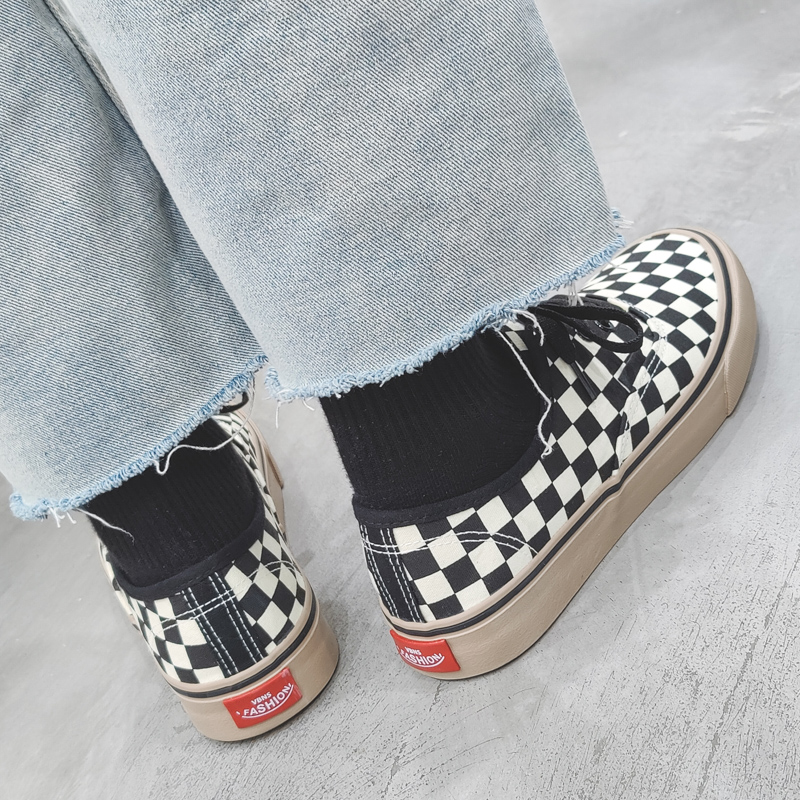 These classic black-and-white checkered canvas shoes bring a timeless retro vibe to your wardrobe. Crafted from high-quality canvas material, the shoes are breathable, lightweight, and durable, ensuring all-day comfort for any occasion. The iconic checkerboard pattern paired with a sturdy gum rubber sole offers a perfect combination of style and function. The anti-slip outsole provides excellent grip and stability, while the cushioned insole guarantees a soft, comfortable fit. Whether for skateboarding, casual outings, or urban streetwear, these shoes are your ultimate choice for a cool, versatile look.